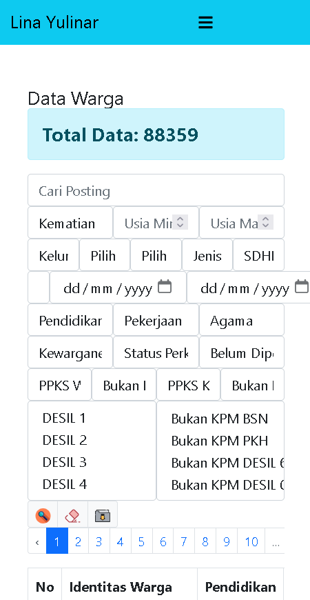 Identitas Pemerlu Pelayanan Kesejahteraan Sosial (PPKS) dan data perlindungan sosial.